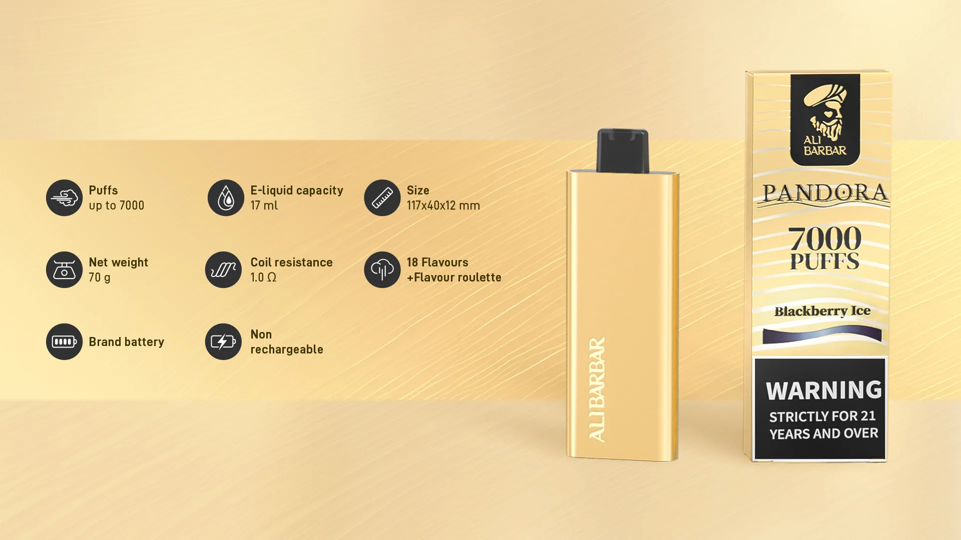 Inspired by the mythical Pandora’s Box, the Alibarbar Pandora 7000 disposable vape is designed to deliver a sense of surprise and delight with every puff. Compact yet powerful, it combines convenience, premium build quality, and a wide range of rich, satisfying flavors.
